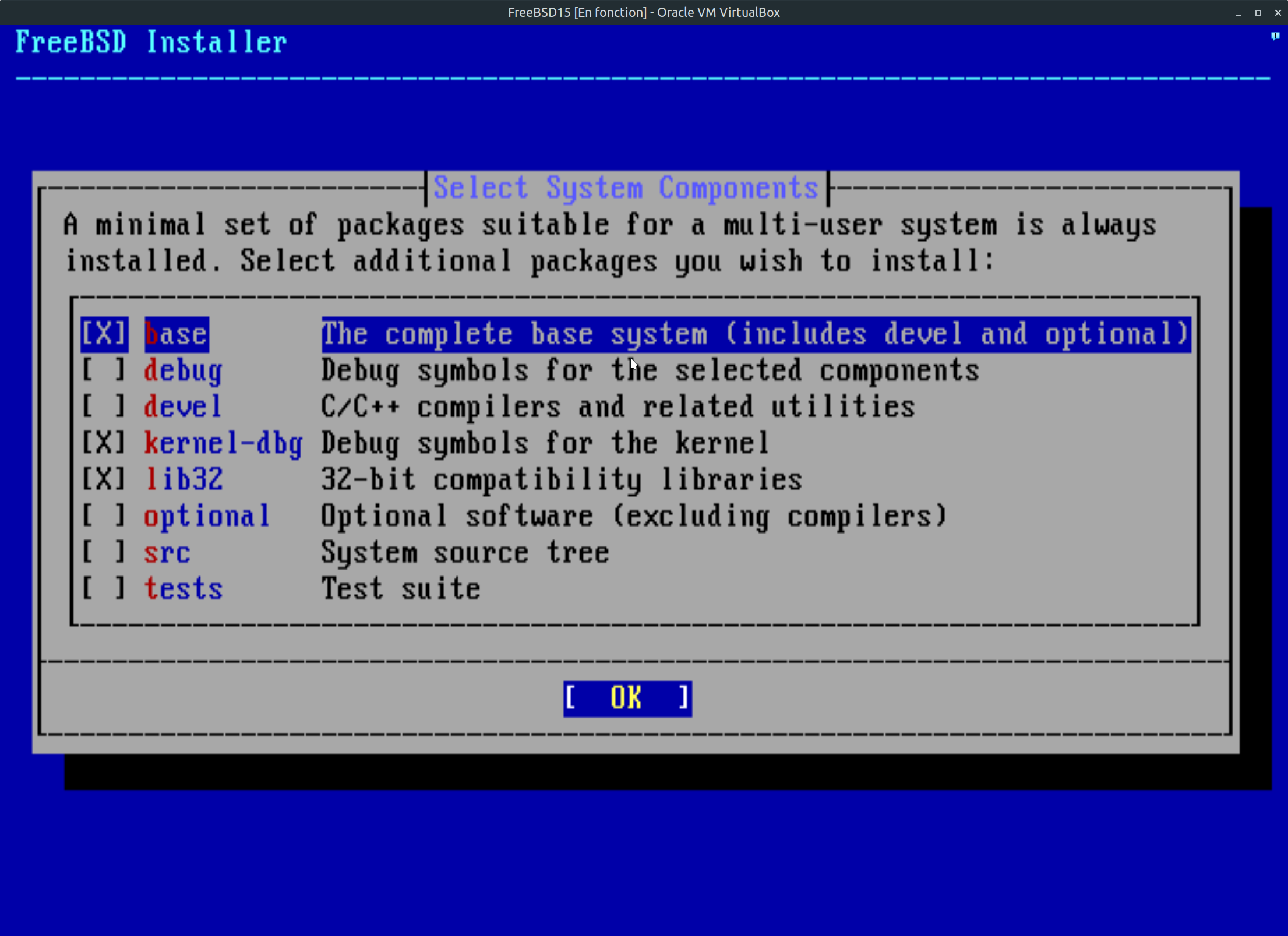 Étape 12: Comme l'étape précédente pour une installation conventionnelle, votre choix est celui par défaut. Les autres choix de la fenêtre ci-desous s'adresse aux professionnelles au niveau serveur. Faite entrée sur votre clavier sans plus attendre.
