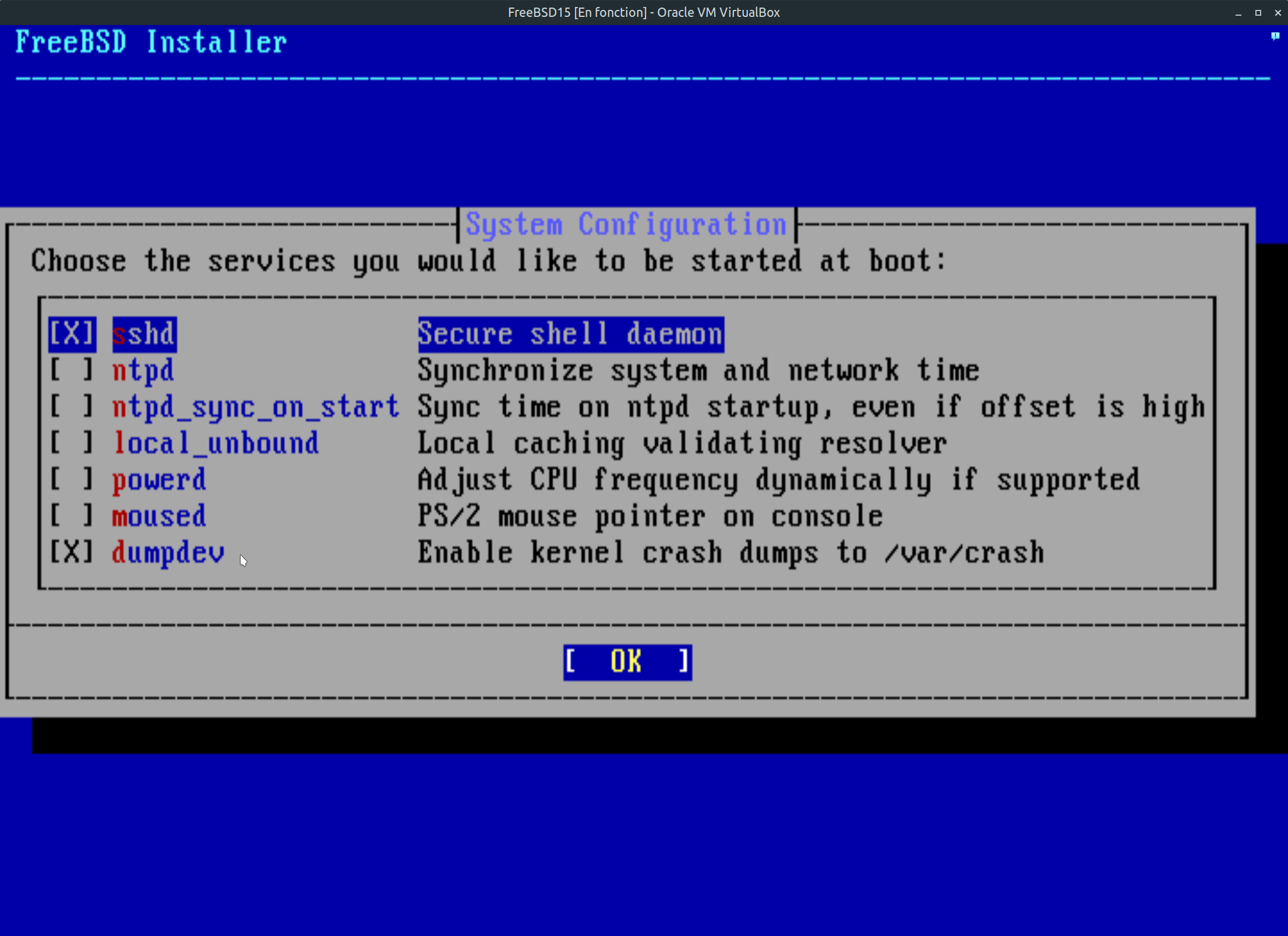 Étape 22: FreeBSD vous offre l'opportunité de choisi les services qui seront démarré lors du démarrage. Laisser le choix par défaut. Faite entrée au clavier pour continuer.