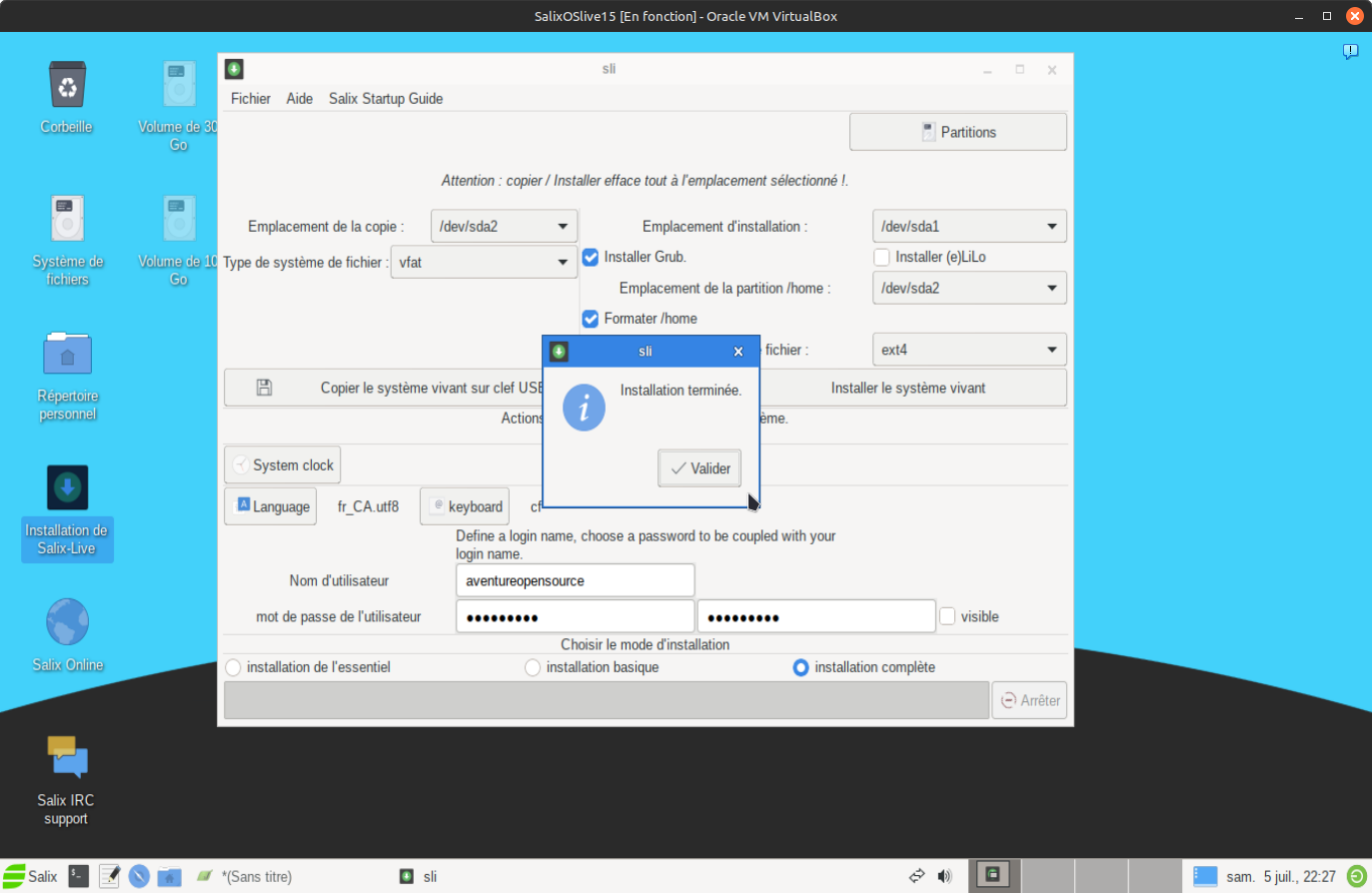12. Voilà le prgramme d'installation s'est effectué avec succès! Vous avez terminé, redémarrer le sysème afin de vous rendre sur votre nouveau système SalixOS fraîchement installé.