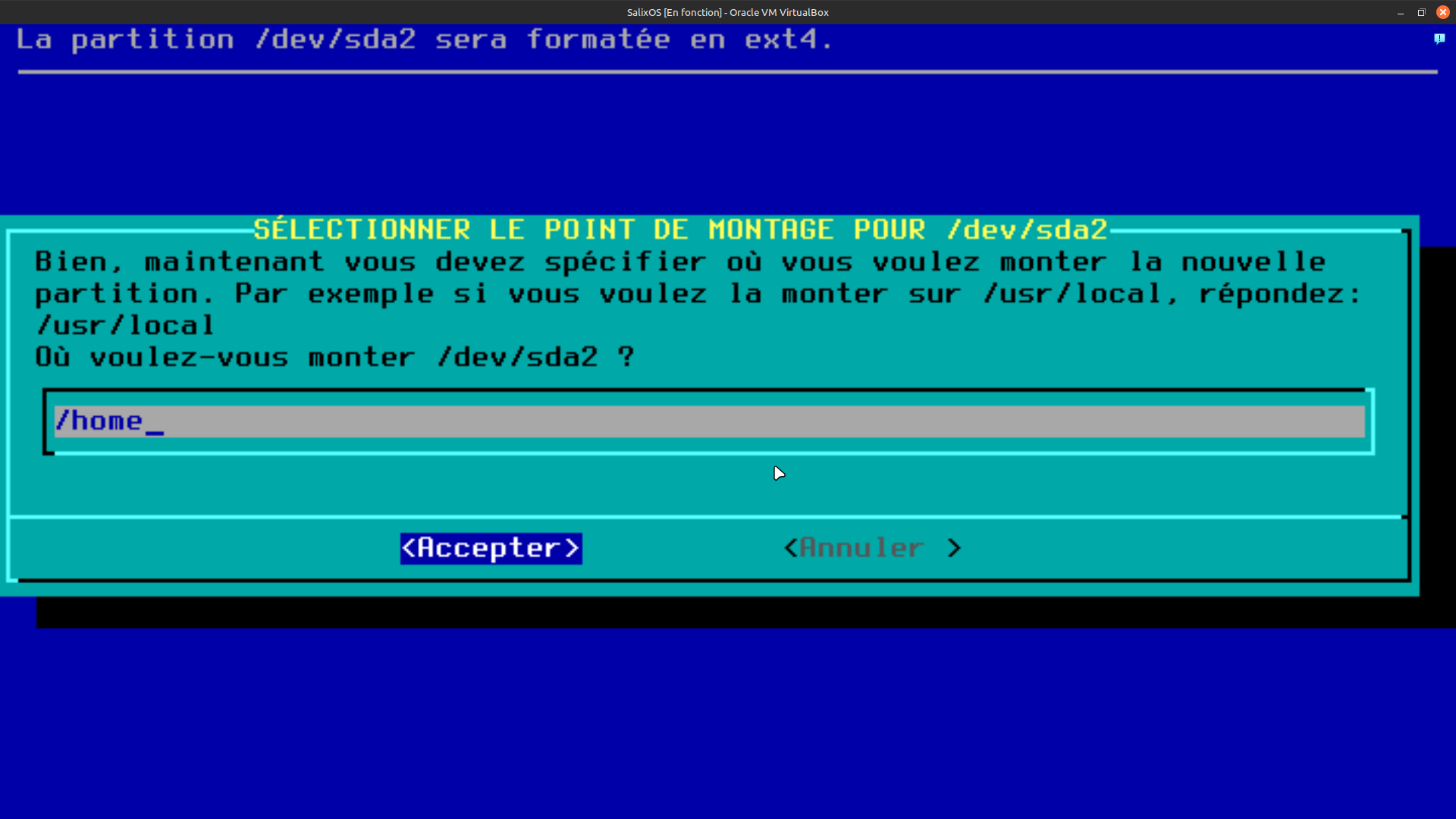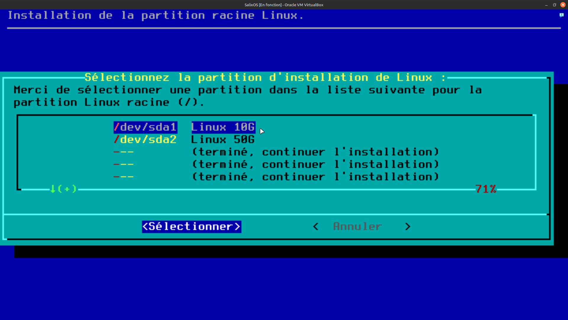 Section 2 installation SalixOS partionnement du disque (Dans l'antémémoire)
