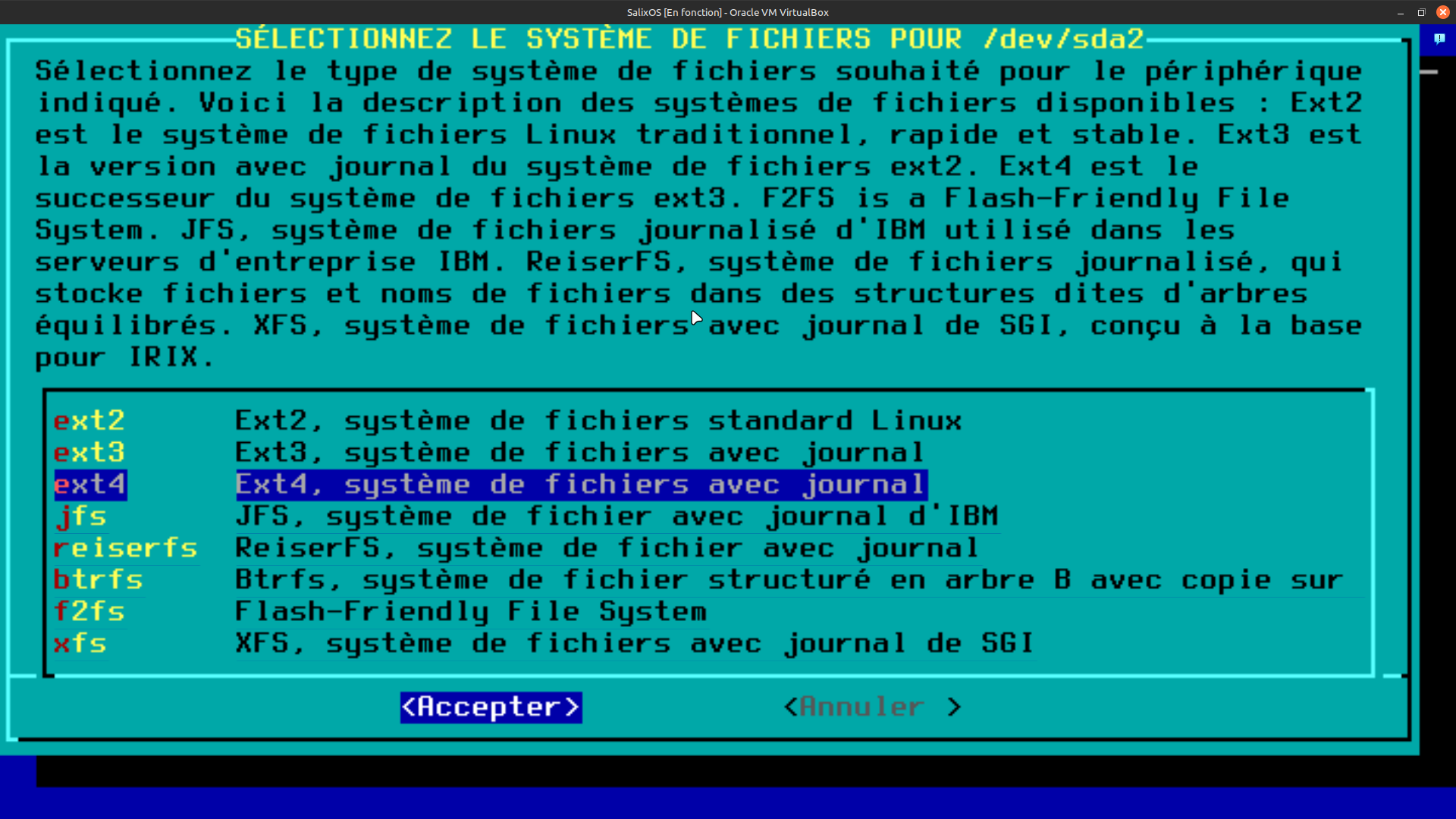 20. Dans cette liste, sélectionner EXT4 à l'aide des flèches du clavier qui est le format par défaut