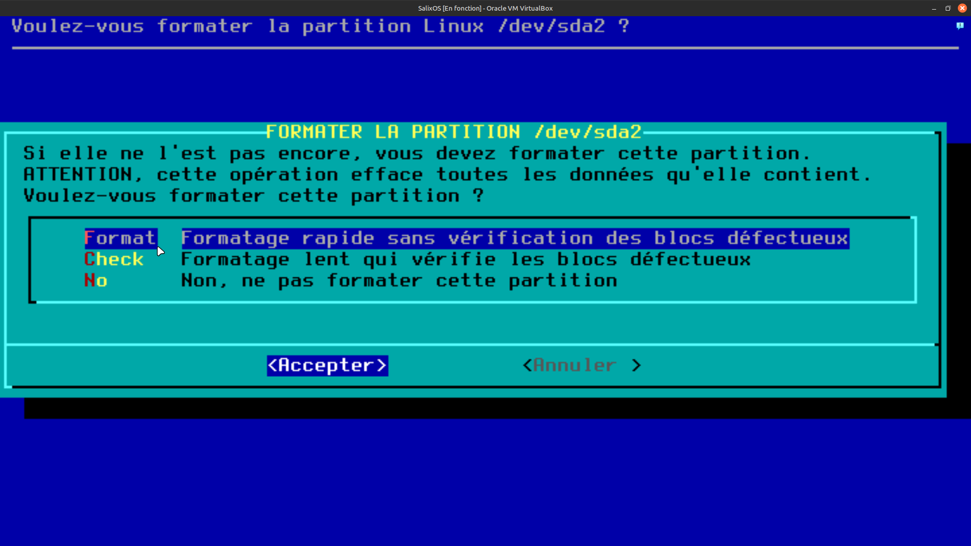 19. Cette étape est celle du formatage de la partition vous n'avez simplement qu'à accepter "entrée" sur le clavier