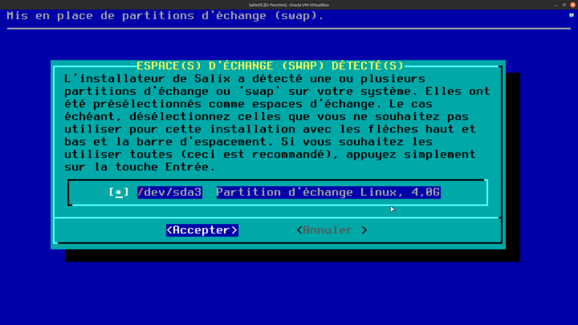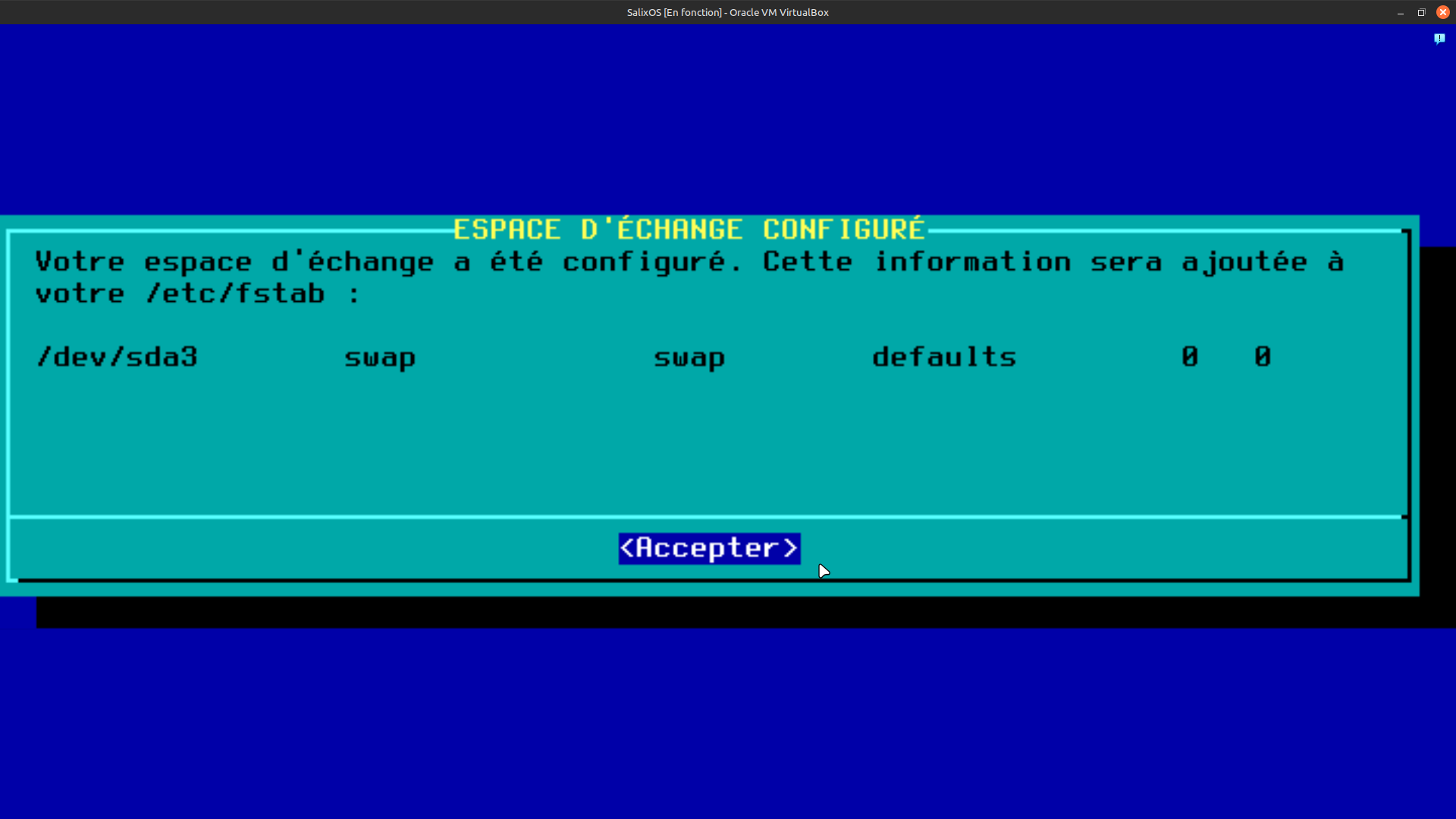 17. Vous voici à l'étape "accepter" votre choix de la partition d’échange swap