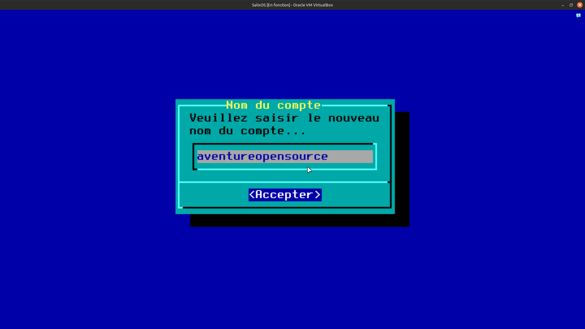 38. Vous voici à l'étape de la création de l'utilisateur, entrer le nom qui vous convient. Ensuite cliquer sur "entrée" pour valider