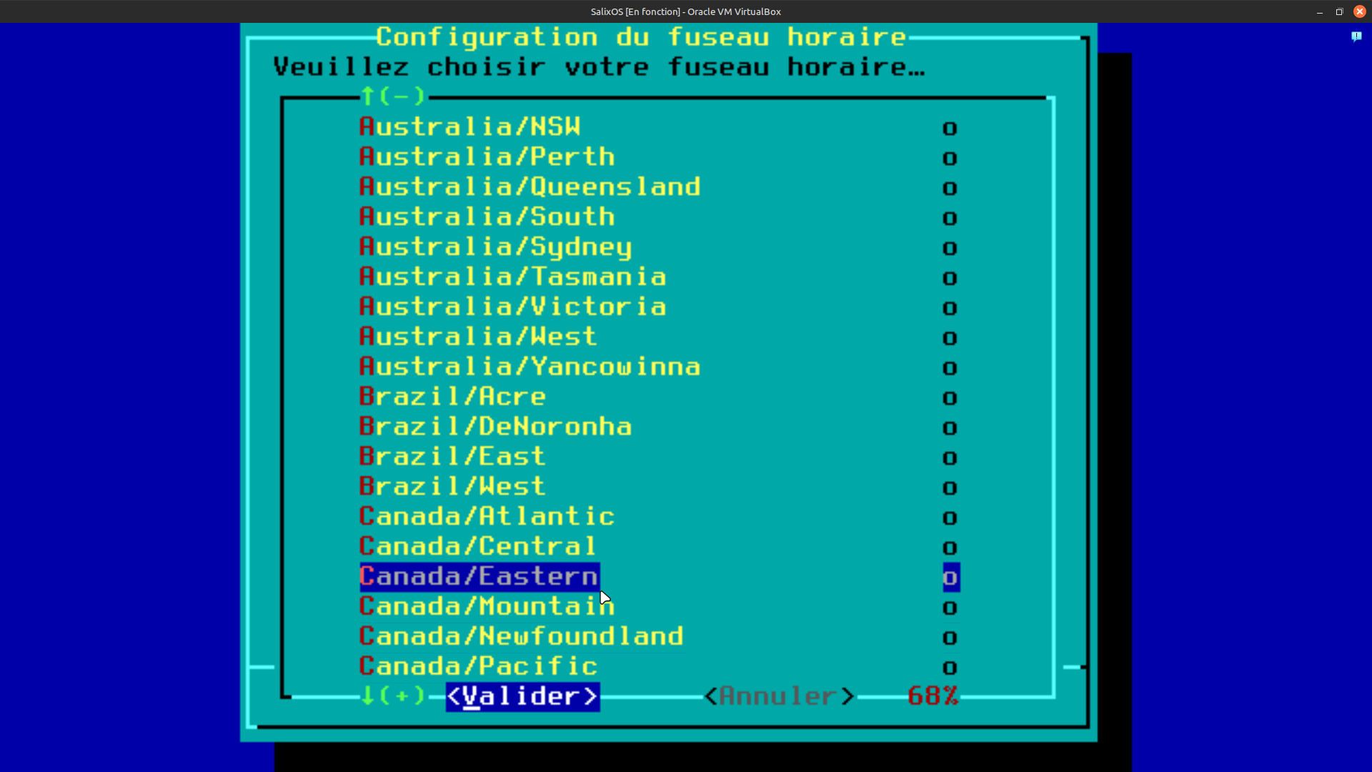 34. Dans cette fenêtre de dialogue, vous devez utiliser les flèches du clavier pour sélectionner votre pays. Dans mon cas, je sélectionne Est du Canada. Ensuite valider votre sélection à l’aide de la touche "entrée" du clavier